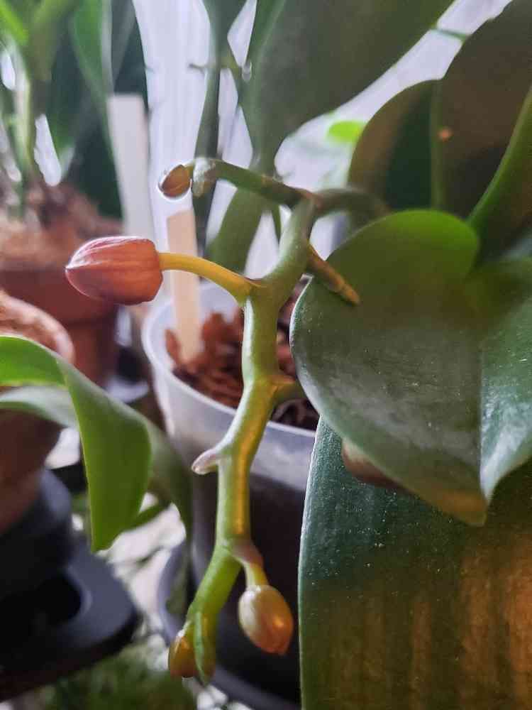 胡蝶蘭って花芽がついてから咲くまで期間があって楽しみにしている分しけた時の残念度合いが半端ない、、😿