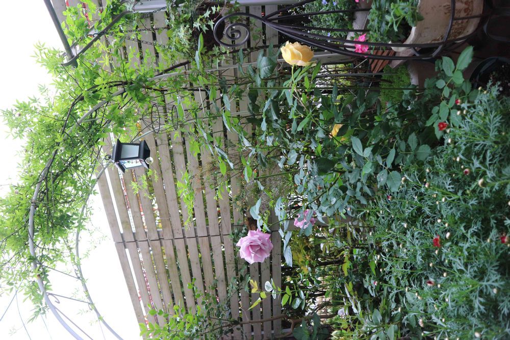 先日の雨で全開のバラは落ちてしまいました!なので...少し寂しいガーデンの景色です。