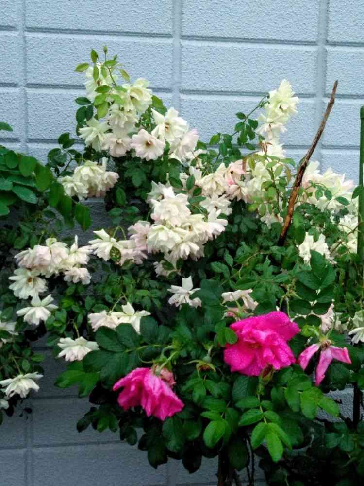 強い雨☔に、全部が首部を垂れて、風雨に耐えて、咲いていました。