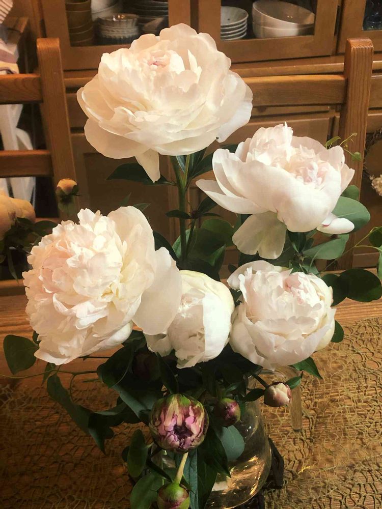 白のシヤクヤクもいいね🤗🌼ボタン色があるけどもう終わってしまったわ水揚げが大変?