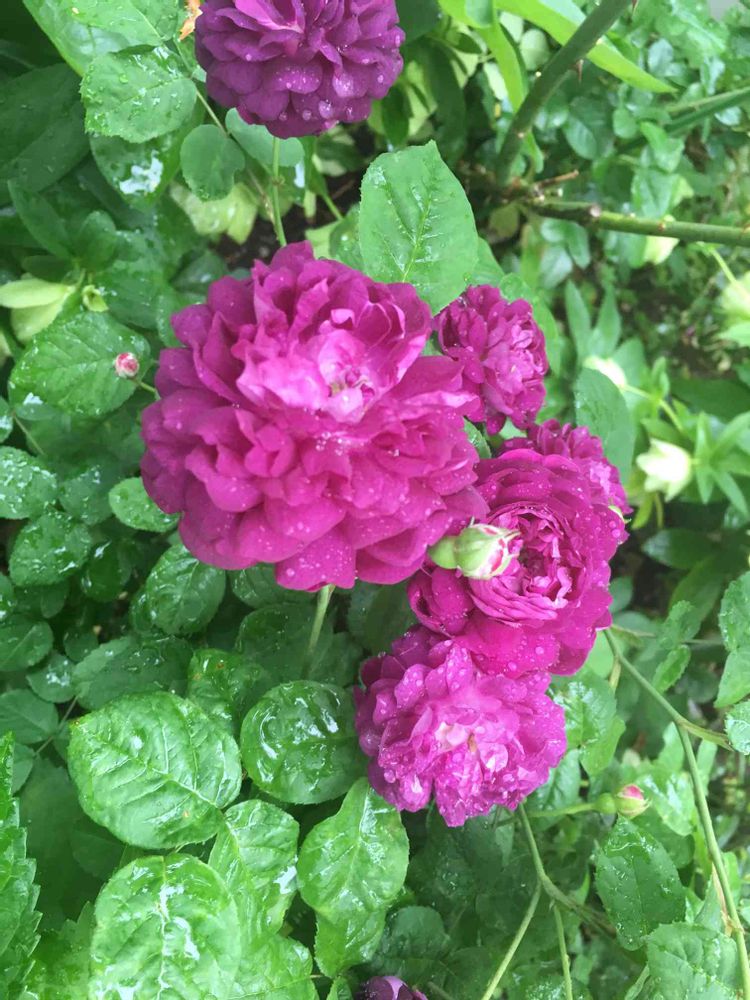 濃い紫色の小さな花ですが、いつも薔薇を選ぶ時に同じ色合いばかりでちょっと変わった薔薇が良いなと思い買ったのでした。