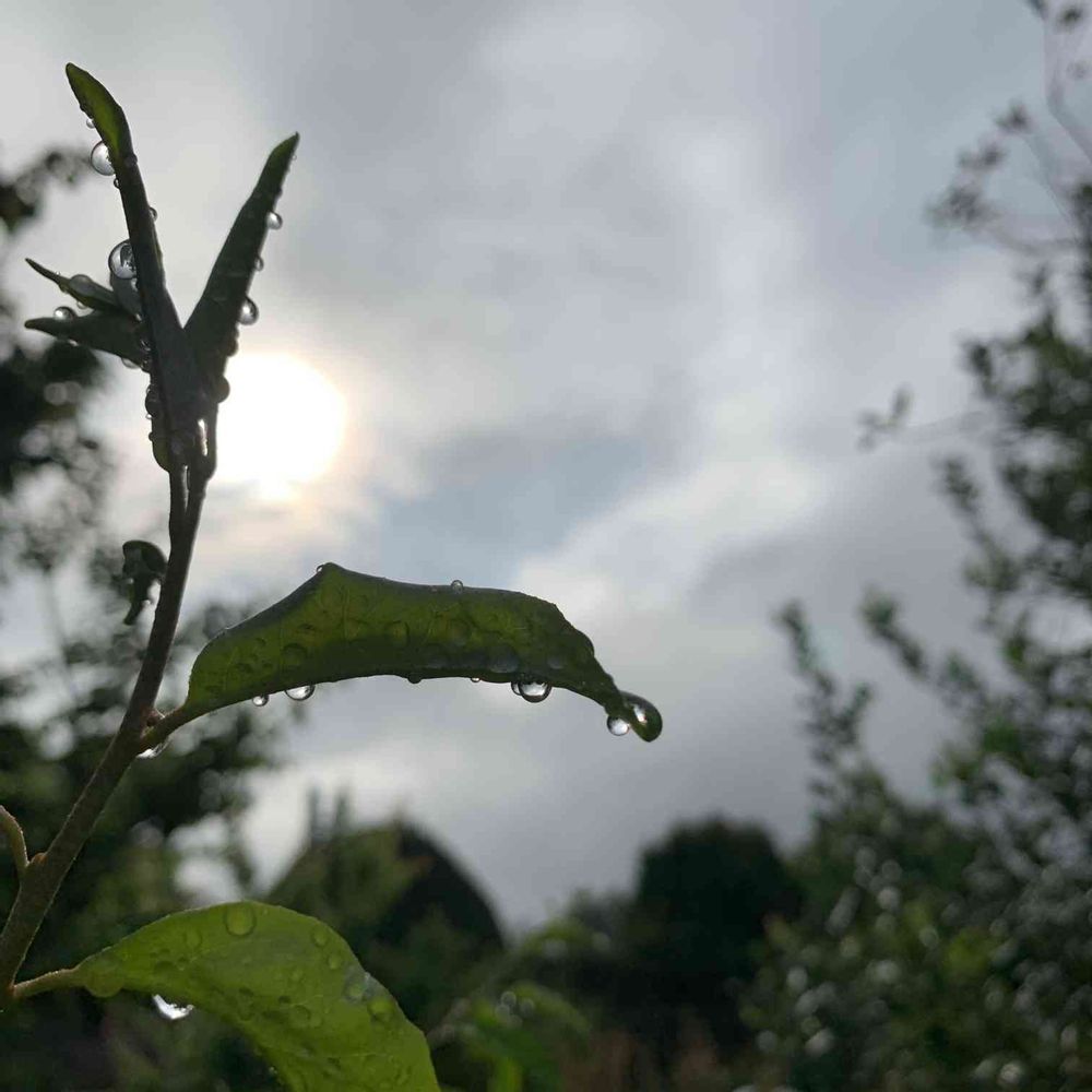 雨上がりの朝。散歩道の葉っぱのしずく💧が素敵だった✨