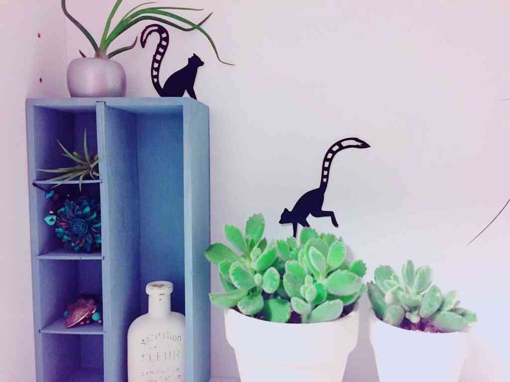 ワオキツネザルが熊童子の森で遊んでるかのよう。
