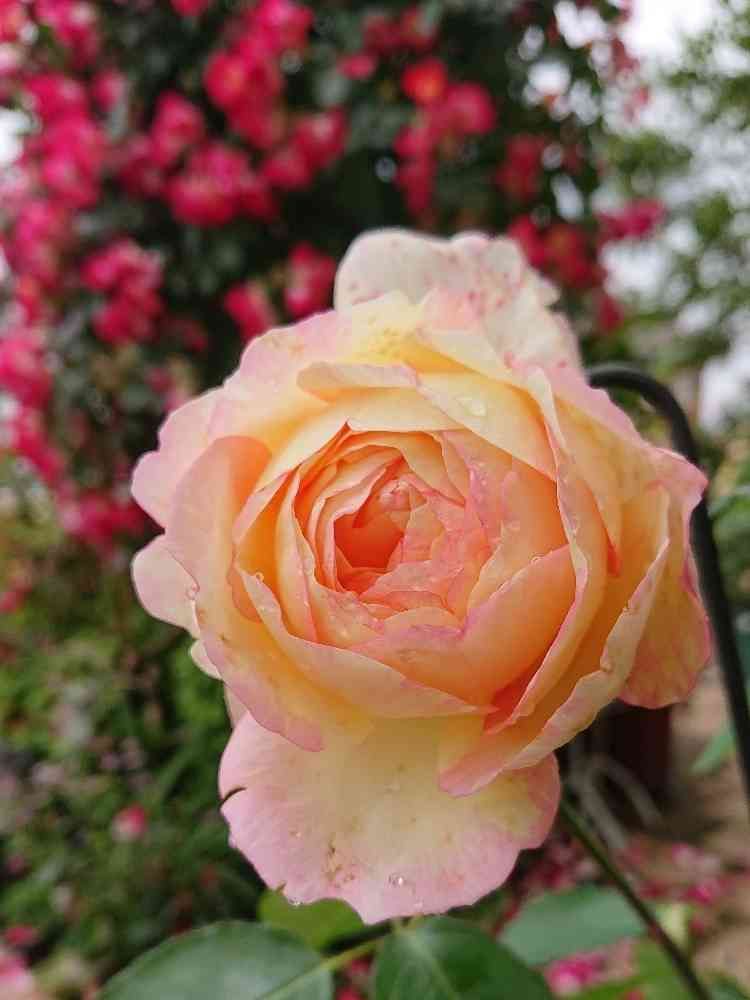 どちらかわからなく成っちゃったけれど😂同じ頃スノーベルさんときらまるさんに送ってもらったのね😂🎵 ゴールデンセレブでもいいかぁ~💓と思っていたけれどペッシュだったよ~💓 どちらも同じくらいのサイズになって鉢植えで1mくらいのオベリスクにクルクル🎵 どちらも同じくらいで咲いたわ~💓 ありがとう~🎵