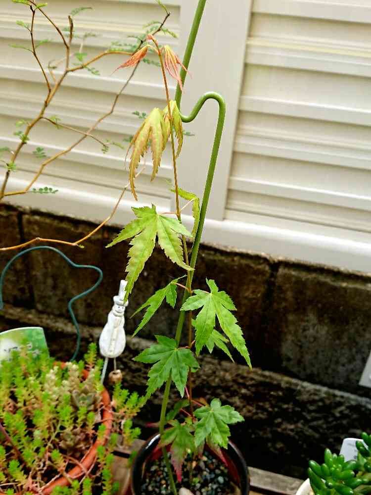 裏庭の陰でひっそりと芽を出してたもみじです。