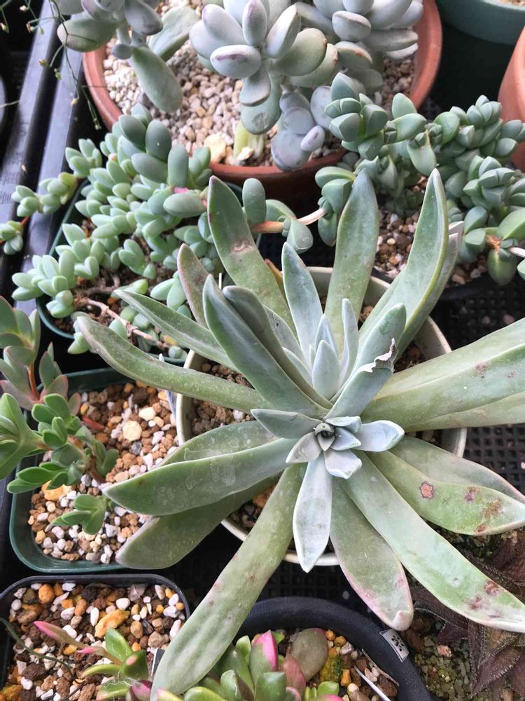 最初見たときはブルーム皆無で(こういう品種なんだ…)ぐらいに思いましたが中の白い葉でちゃんとしたダドレアだと確信しました(雑