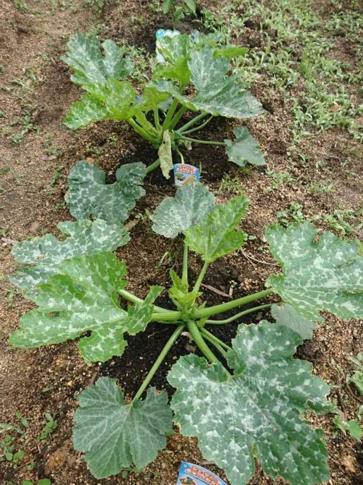 ズッキーニ、大きくなってきました。葉っぱは、触っても白い粉も着かず元気なので、これは模様でしょうかねー?👀🙄❔