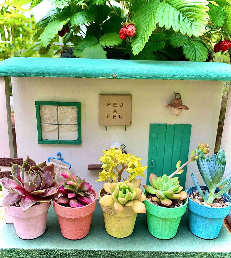 ミニ鉢にミニ多肉を💙💚💜💛💗