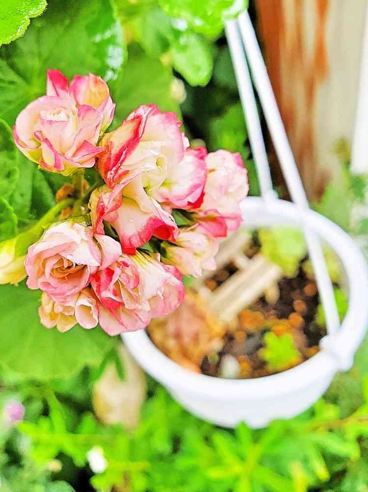 フリルでピンクの縁どり🌹ゼラニウムの匂い苦手なんだけど可愛いくて許しちゃう😘