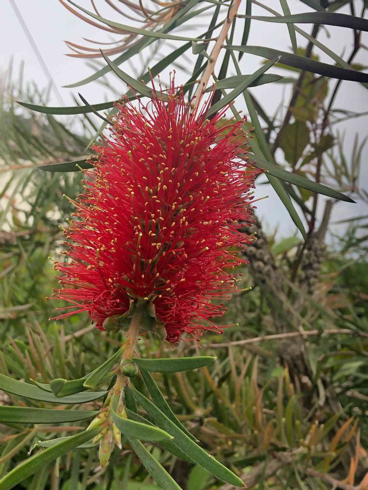 近所のウォーキングで見つけたこの赤い花🌸まるで赤いブラシのよう🤗