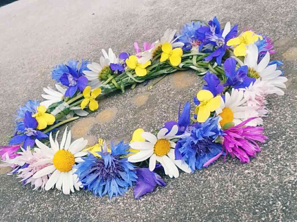 シャスターデージー、ヤグルマギク、マツバギク、ナノハナ、チドリソウで作った花冠です😊