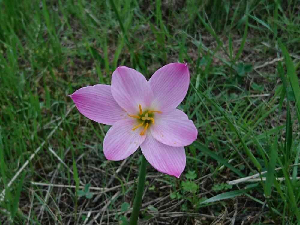 はい🎵たますだれは、白いものが一般的ですがピンクもあります❗どこからか、球根がころがって自生したのかも🎵名前を教えて!タグに回答しました。