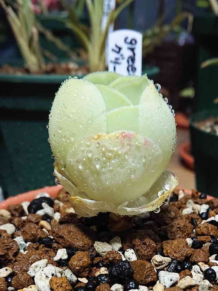 今晩は!今日メルカリで買ったグリーノビアエッグローズが届きました!、名前通り本当に卵みたい🥚(ノ≧▽≦)ノ。