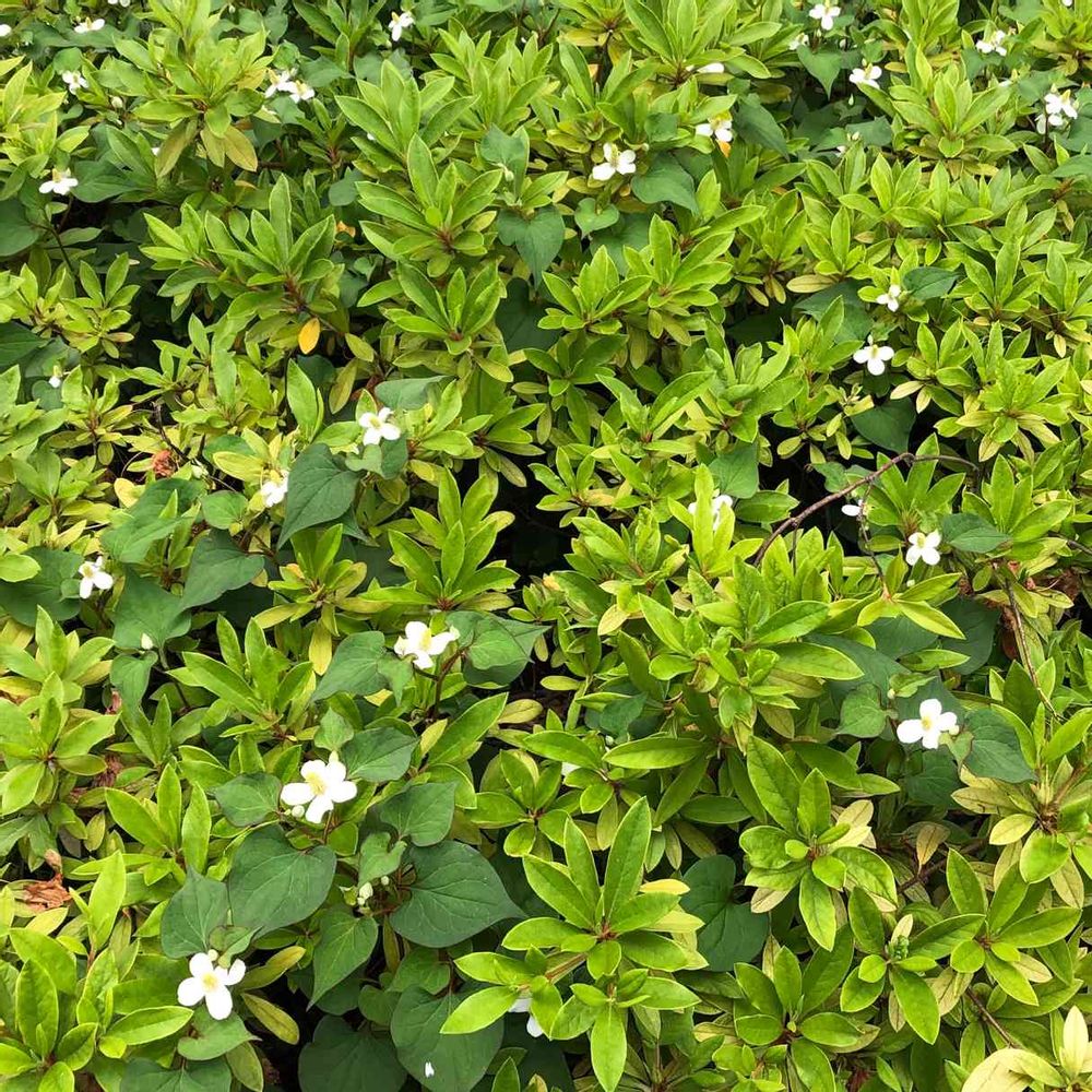 咲き終わったサツキの葉っぱの間から、次はドクダミの花がコンニチハ( ⸝⸝•。•⸝⸝ )
