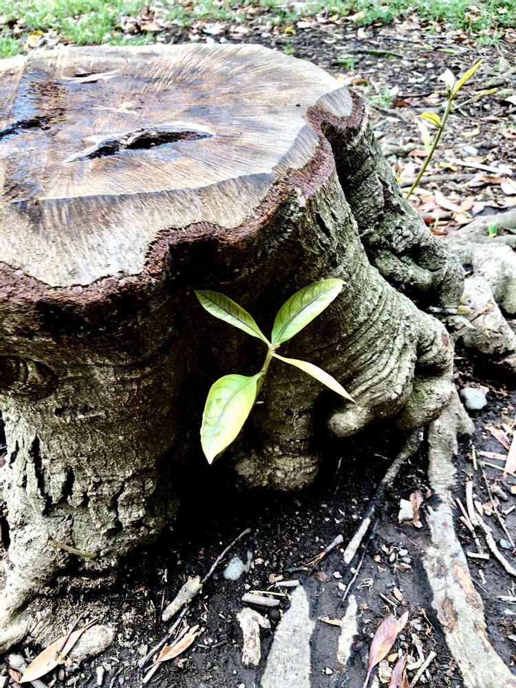 何かの芽(マテバシイかも‥)が古切り株から顔を出していました、ガンバレッ!