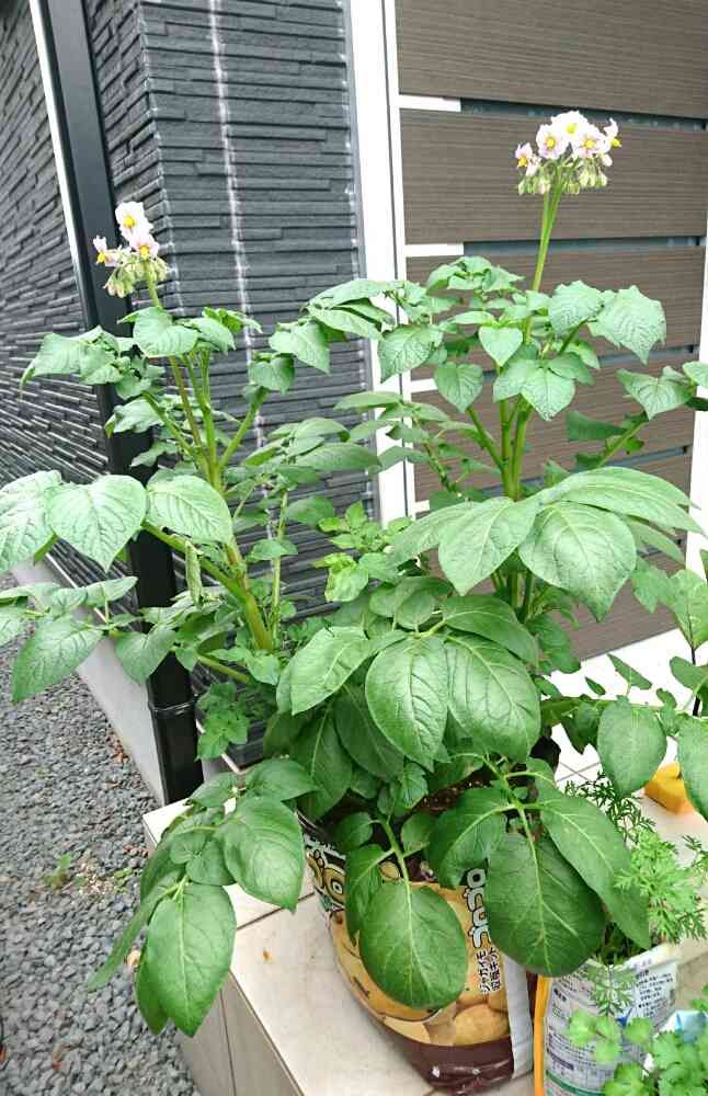 袋のまま育てるジャガイモ、お花が咲きました~(・∀・)