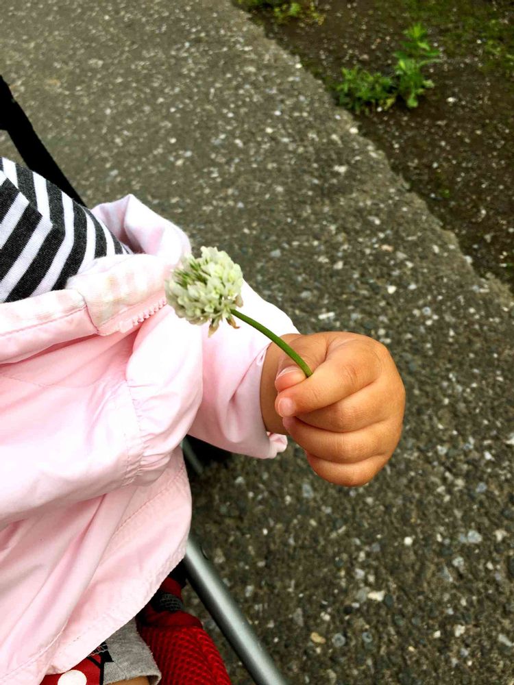 こんばんは⭐️今日はなんとか夕方まで雨が降らなかったので、娘とおさんぽへ行きました。途中シロツメクサを発見❣️子どもの頃よく花かんむり作ったなぁ。