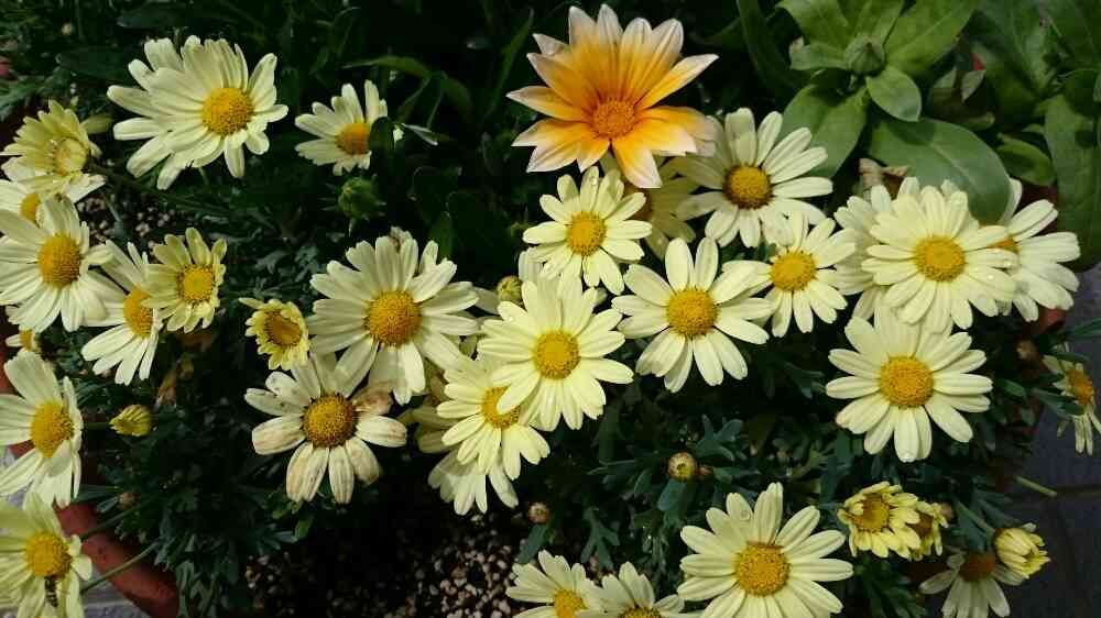 マーガレットの中に黄色いガザニアがひとつ咲いたよ(❁´`❁)*✲゚* ✿