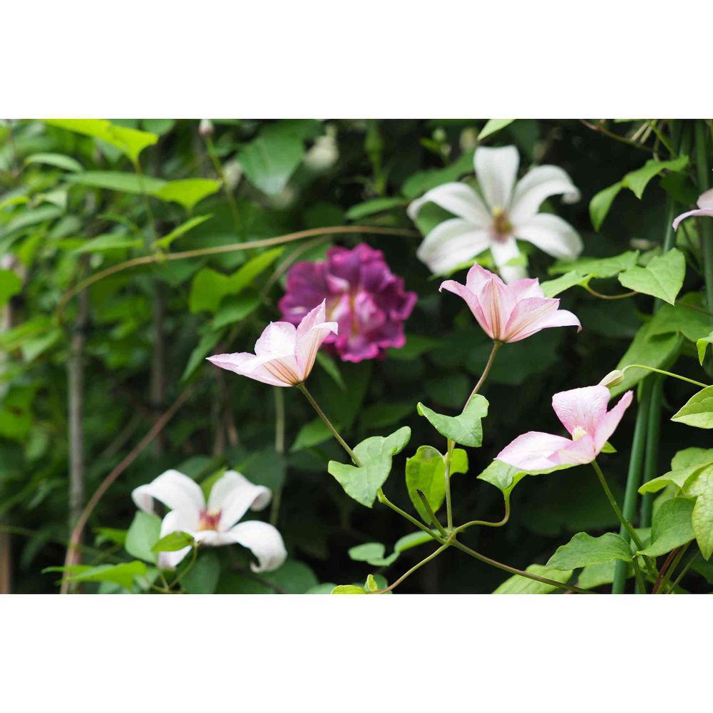 ロザリアンの方には申し訳ないのですが、いい加減な手抜き園芸にはバラは敷居が高いので、この時期の箱庭の主役はクレマチス!!