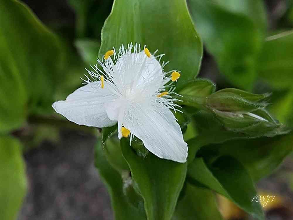 初夏に白い花弁の三角形の花を3枚咲かせる。