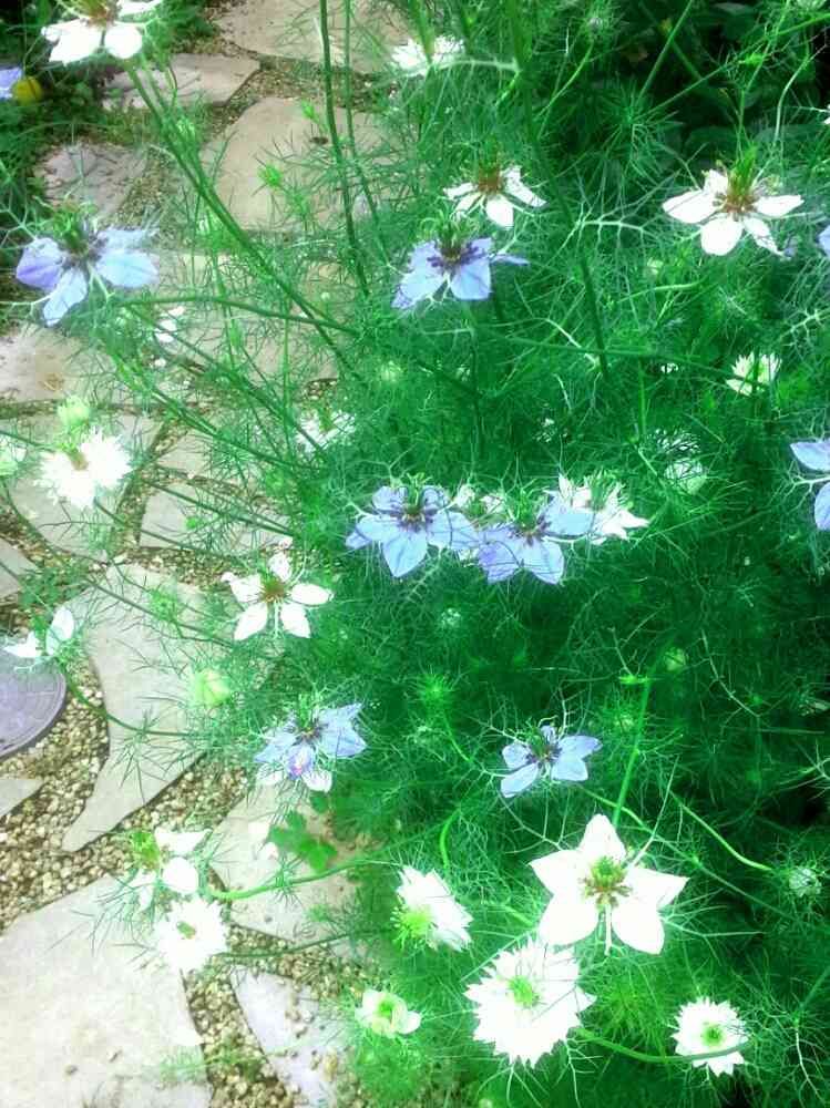 ニゲラが満開。雨続きで倒れてしまい、切ってしまったところもあるけれど。