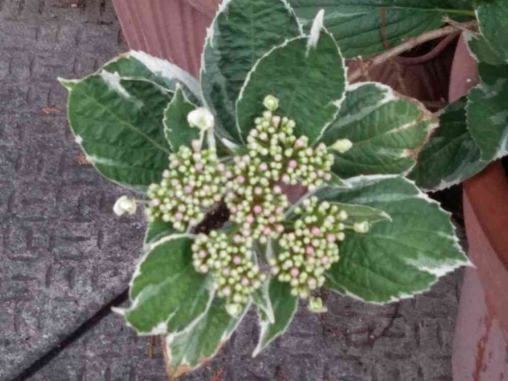 居酒屋さんの、プランターから飛び出した、紫陽花が咲きそうです。