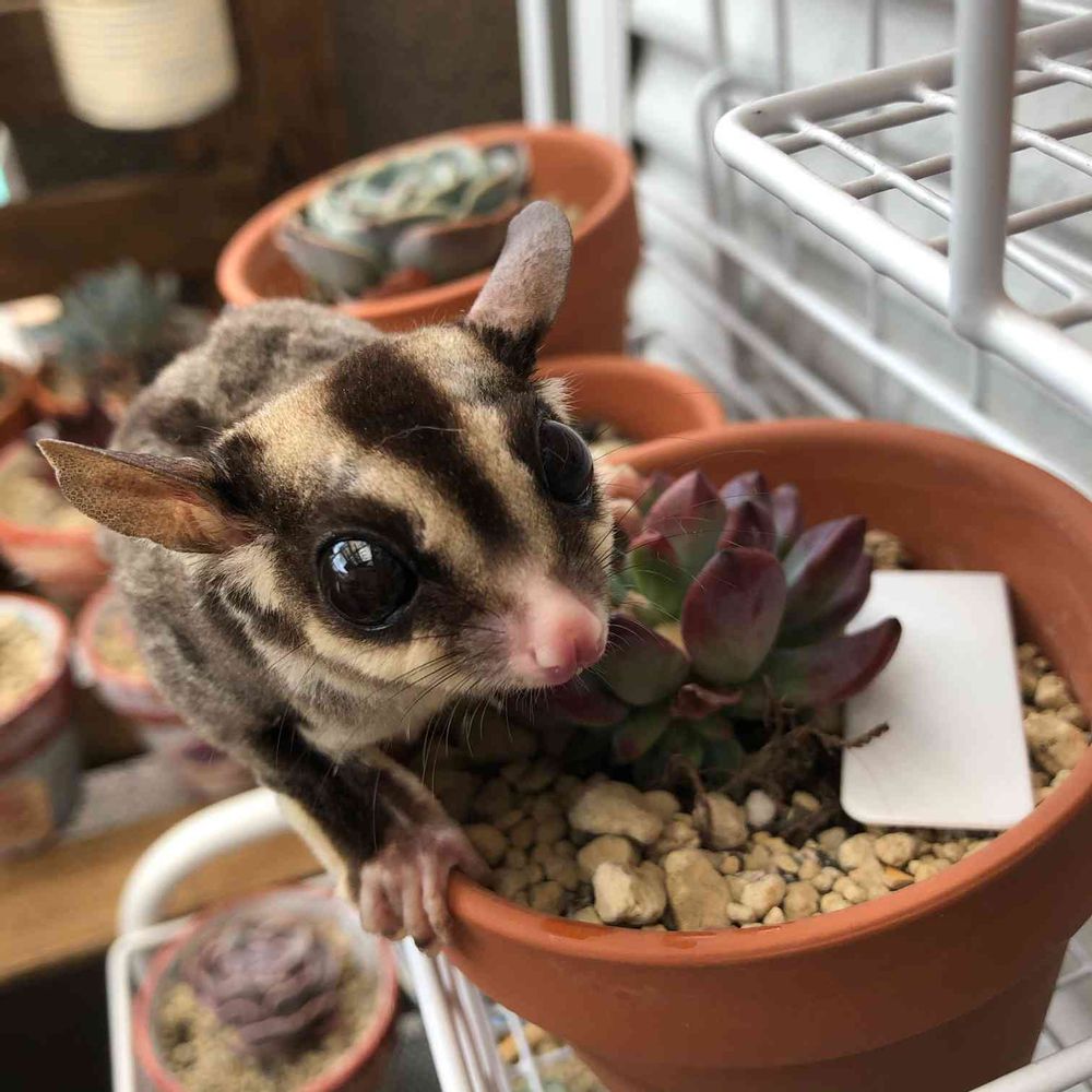 小桃さん、多肉が好きらしく、クンクン臭ってます🐹💕