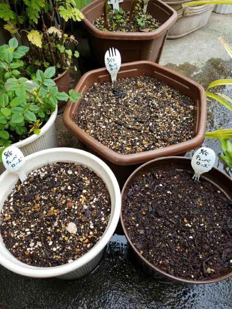 コンビニやスーパーでお弁当を買ったときについてくるスプーンを捨てずにとっておいてこうして花の名札に使ってますよ。