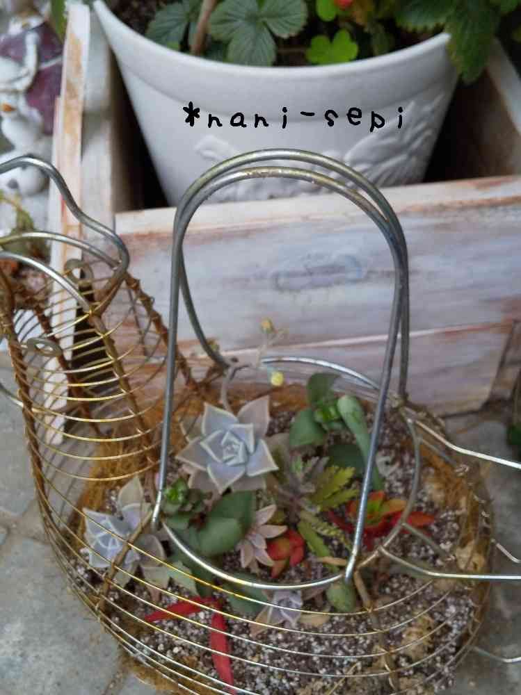 たまご、入れてた、籠、ネルソルで、多肉植えかえたんだけど、何か、土も、崩れ、元気ないんだなあ。🙀