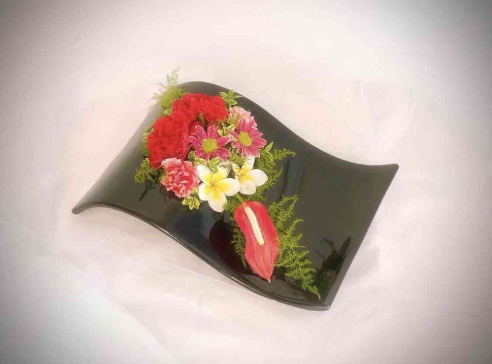こんにちは。黒と赤のコントラストが最高。器がうねっているので、平面的でもあり、立体的でもあるようで、素敵でーす。❕🙌‼️