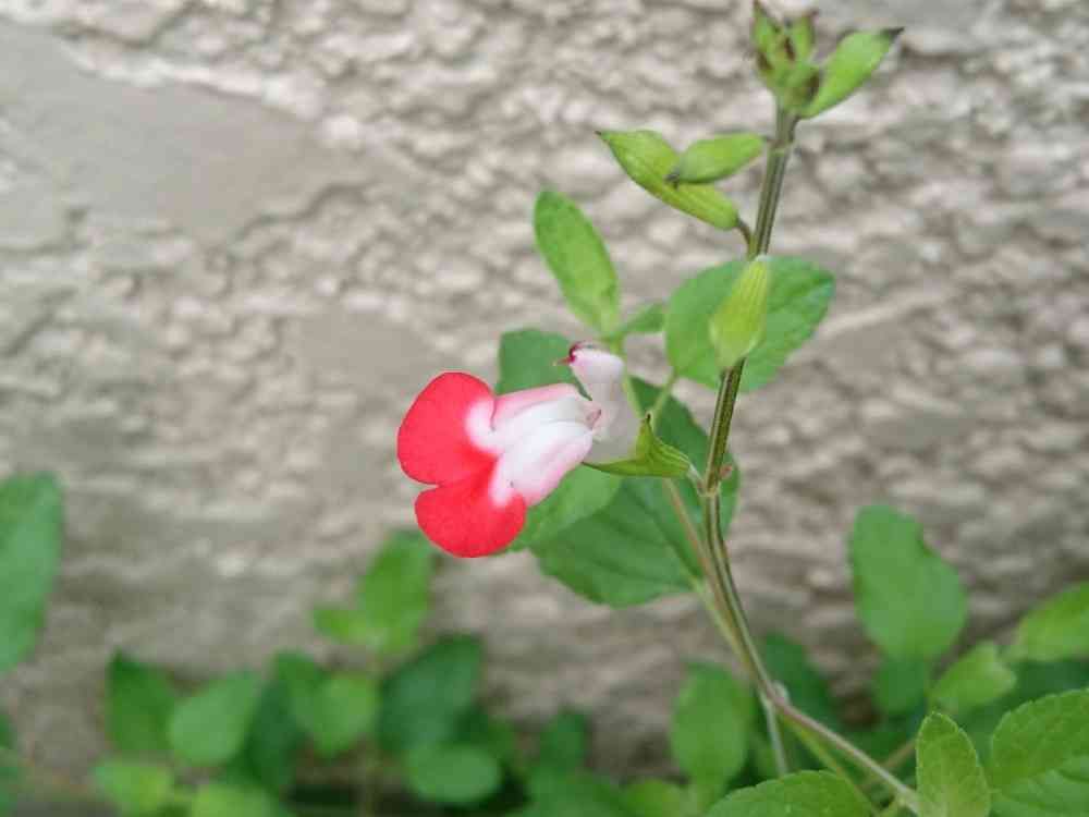 チェリーセージのホットリップスが、一個咲きました。日当たりがあまり良くないので、例年多くの花は咲かないけれど、葉っぱはもりもりと繁っています。
