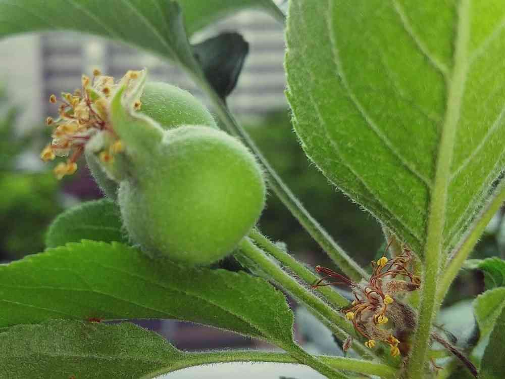 アルプス乙女(姫りんご)の実ができてきました。秋まで守り抜いて、美味しく食べなくては!