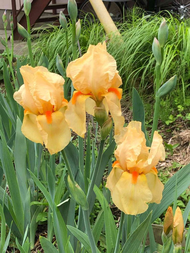 我が家のジャーマンアイリスが咲きました。橙色が同時に咲きました。 他にも有るのですが、順番かなぁ。‼️🤗🤗😊