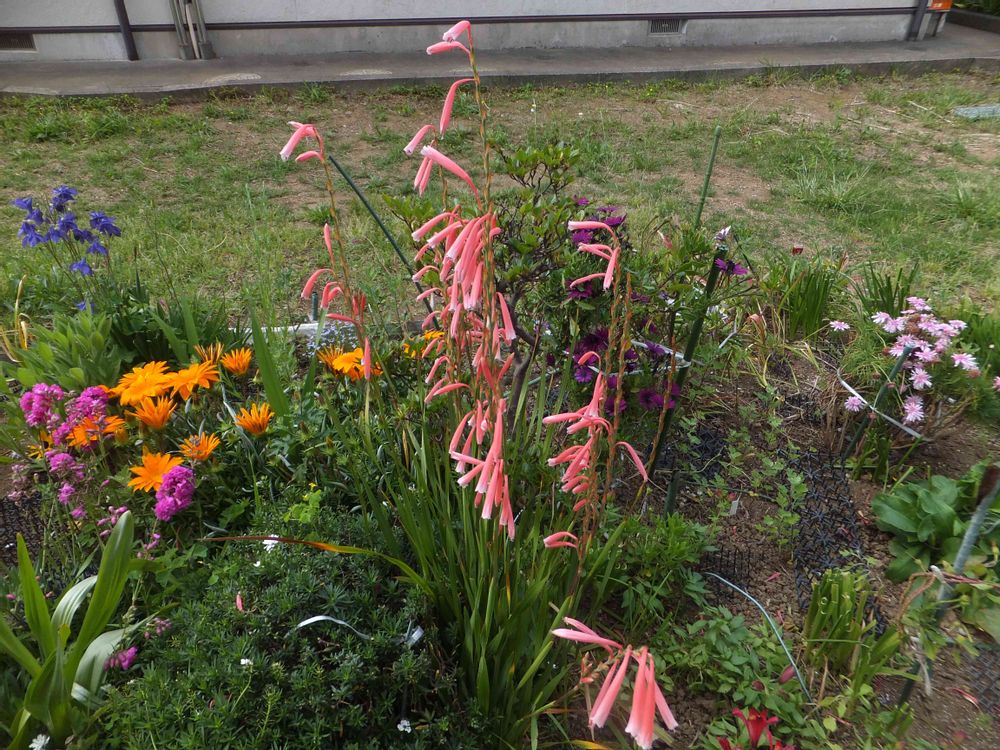 ワトソニアの仲間なら、ヒメモグラユリという、オレンジ🧡色の花をしってますが、もっと派手な感じでした。キルサンタスは、知っているねは、ピンク、それも、淡いピンク🌸で、長い筒状の花の形が似てます。違うかなぁ。花の識別は、難しい。😵
