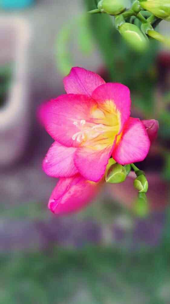 遅咲きフリージア。土のなかで迷子になっていた球根を集めて植えてみたら咲きました🎵