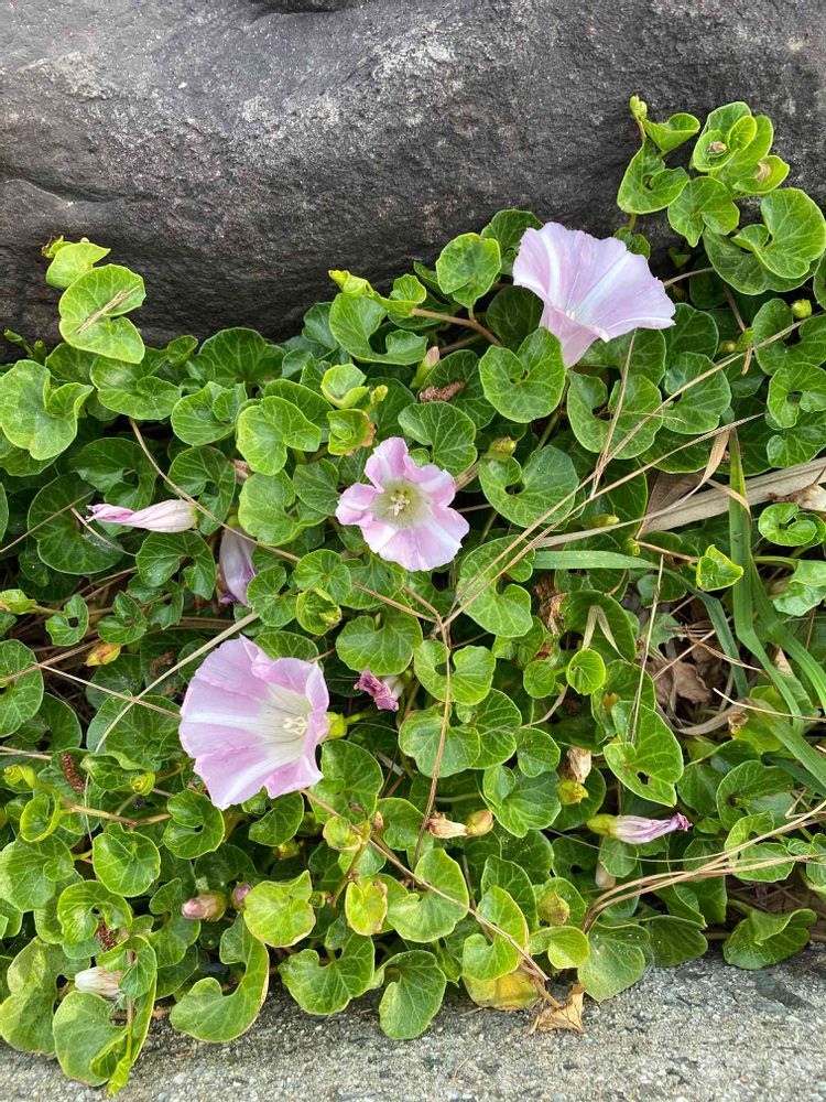海の近くに咲いていました昼顔?に似た花ですが、葉っぱが違うようです。