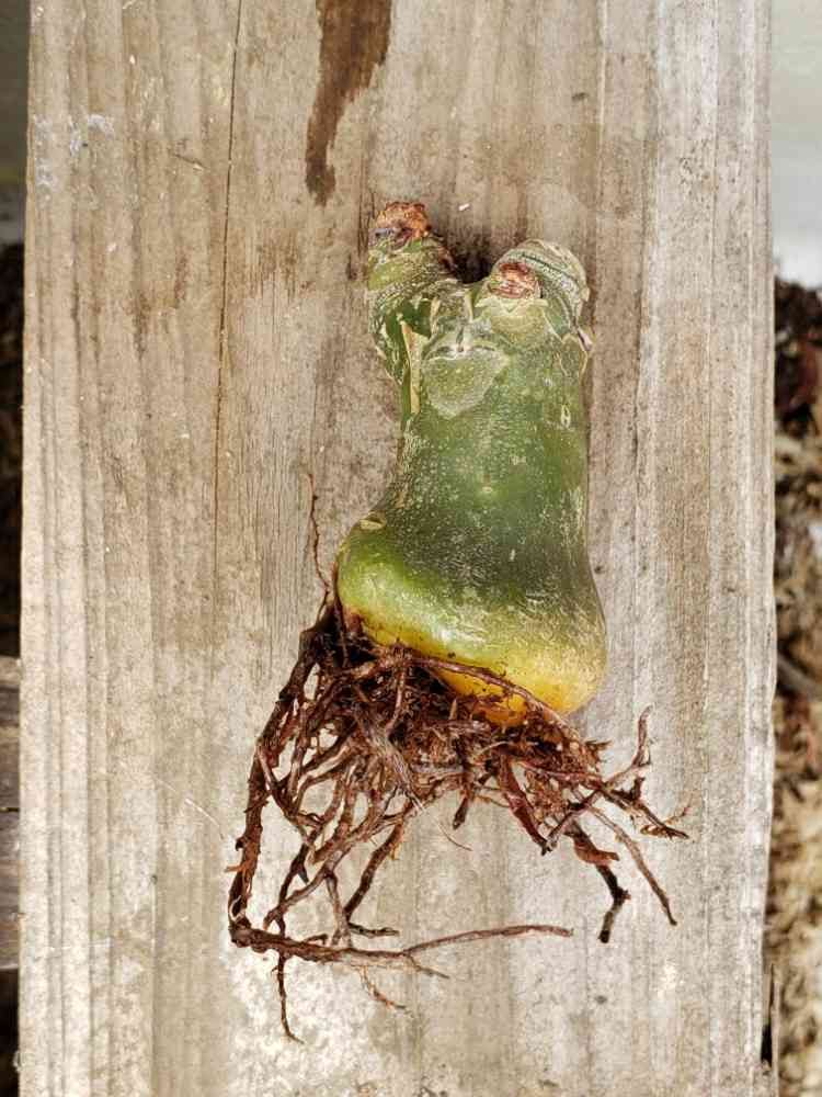 いつだかお迎えし、先日植え替えたナゾ塊根さんまったく動きなく、水やり1週間経っても土が乾かないので、再度植え替えました。