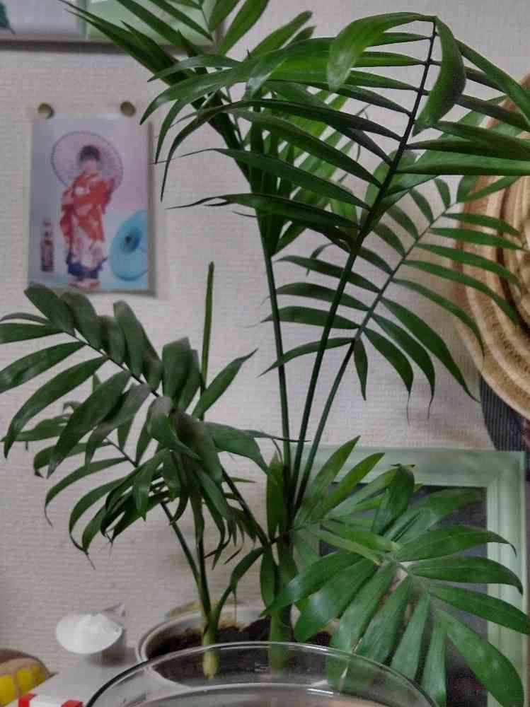 最近始めたメダカ飼育。その鉢の後ろに移動したテーブルヤシくん、順調に成長してくれてます(^^)d