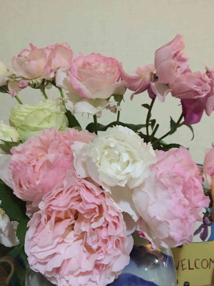 ご近所さんの庭にさいているバラを🌹をいただきました。