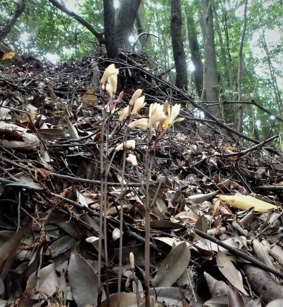 こうした腐生ランを見つけるコツはラン独特の黒い朔(種子の入った果実あと)を見つけることです😉