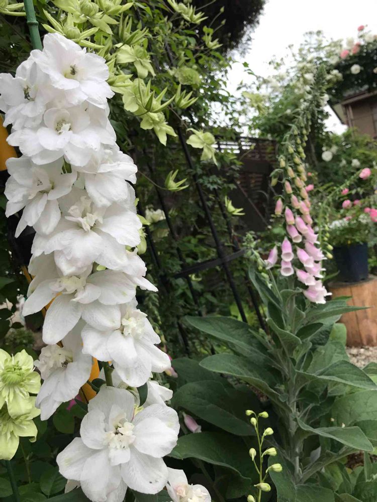 デルフィニュウム、クレマチス、ジギタリスのコラボ素敵ですね