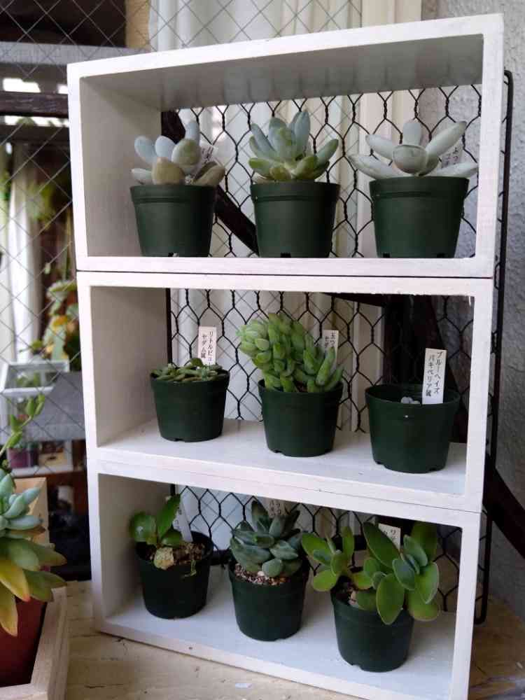 多肉ちゃん、ぐんぐん伸びたら棚大きくしなきゃに?上手に出来てる〜器用ね。さすが〜