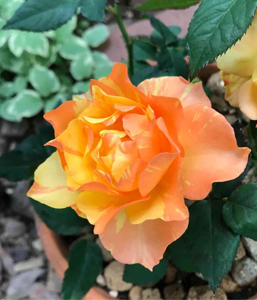 ちょっと前にお迎えしたミニバラさんなんだけど、黄色とオレンジの混ざりがお気に入り。💕
