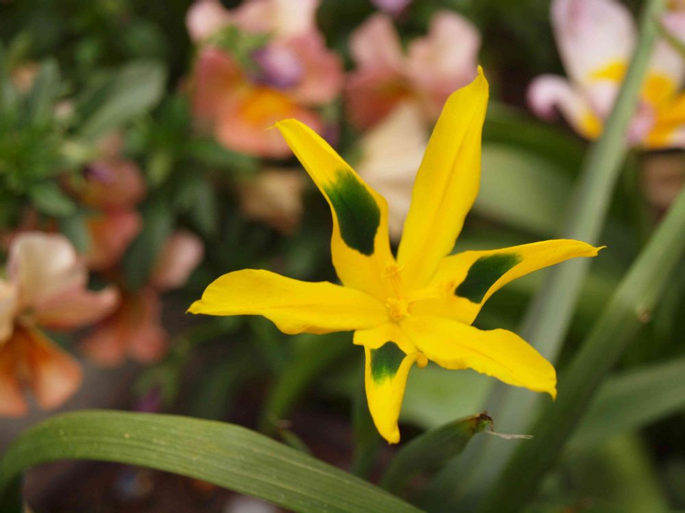 3月終わりから5月中頃までポツリポツリと咲いてくれました。ミックス球根だったので何色が咲くからわからず、4月に咲いたのは、黄色にお花では見た事ないグリーンがのっているこんな色でした。