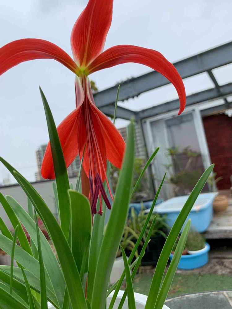 おはようございます。スプレケリア、燕水仙が咲きました。気難しいので開花するかどうか心配してました。一つだけだなぁ。地植えできるそうなので、今年は鉢植えから開放して見よう。