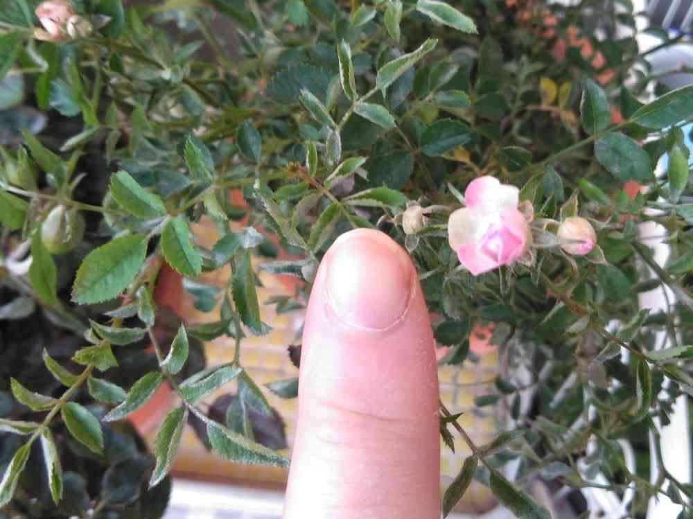 [@id:501795] さん、そうなのです。うどんこ病にやられていてイマイチな開花です。去年こんなにも小さいバラがあるのかと初めて知りました。私もメダカを飼っています。集合住宅のベランダなので薬剤はなるべく避けたいので重曹水や米のとぎ汁乳酸菌水で根絶をはかってます。