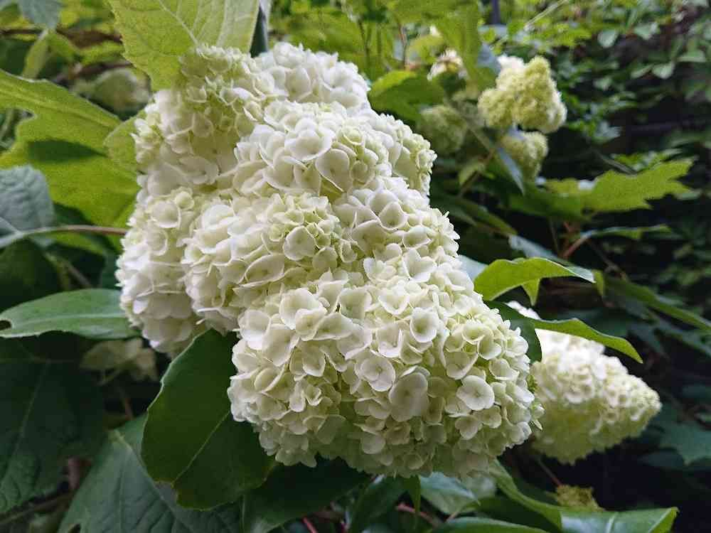 アジサイの中で1番好きなのがハーモニーかもしれません。1株が巨大化して、縦横2m×2mくらい、花房はざっと数えただけで30以上はついてます。他のアジサイと違って、ハーモニーとアナベルは、剪定に気をつかわなくても毎年たくさん咲いてくれるのでオススメですよ😉