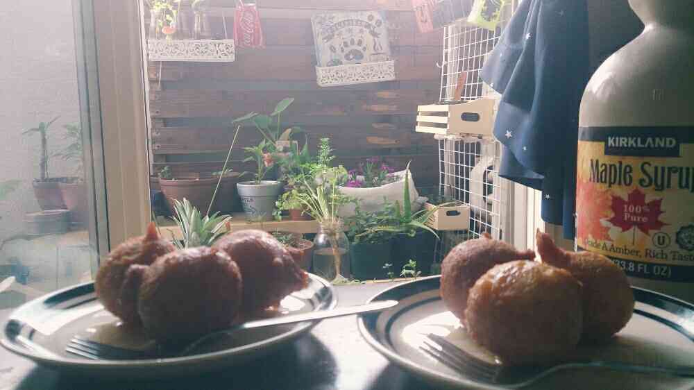 ハイカロリーなドーナッツにメイプルをかけてます❤…あぁ…怖い(;゜∀゜)