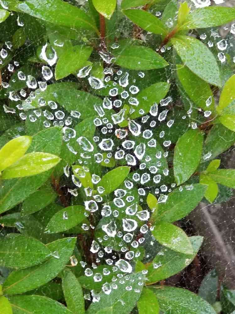 クモの巣がかかった所に雨が。すてきな一枚になりましたね。