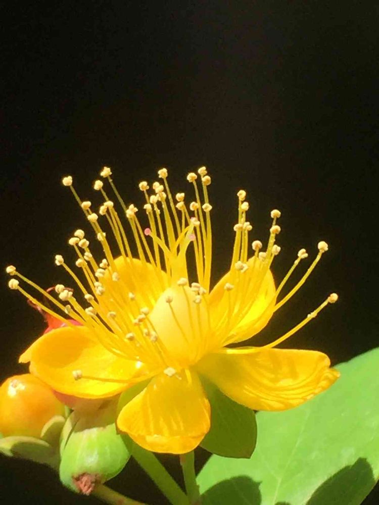 バックの黒で明暗くっきりと黄色いヒペリカムを引き立たせてしべまで全てが綺麗です😆👏✨